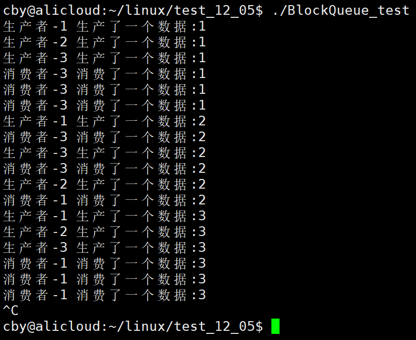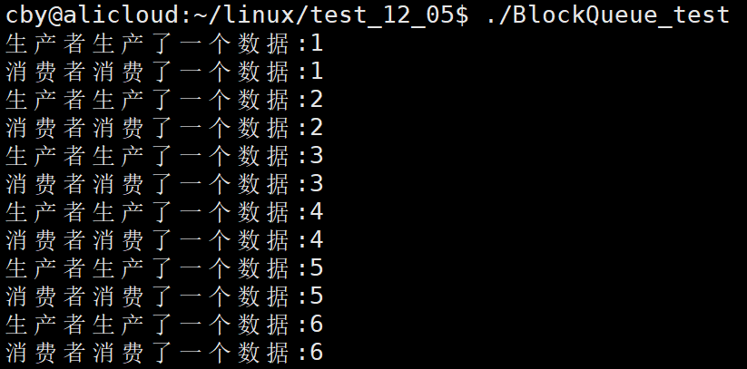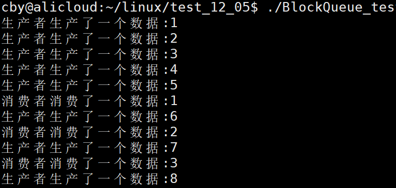 生产者每生产一个数据就休眠一秒,消费者不休眠一直消费时