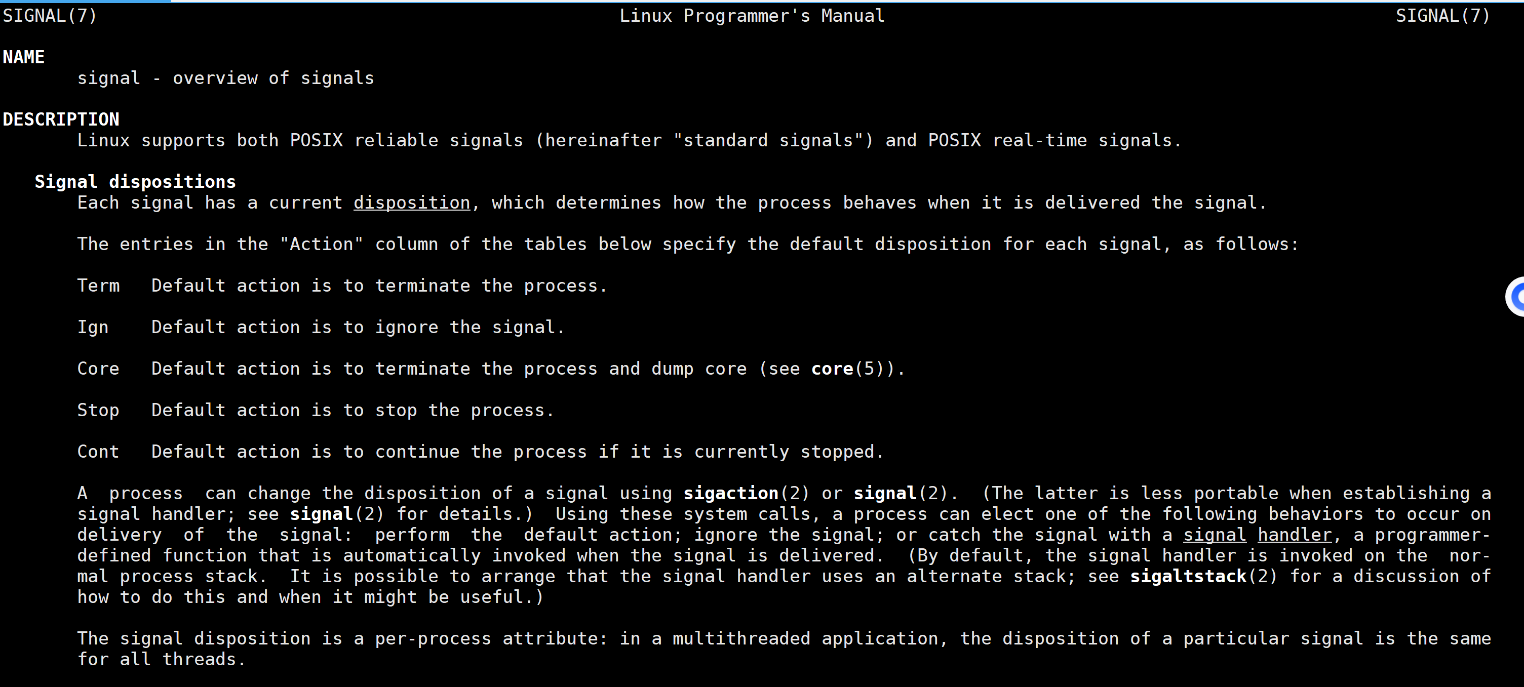 当一个进程要异常终止时,可以选择把进程的用户空间内存数据全部保存到磁盘上,文件名通常是core,这叫做Core Dump。进程异常终止通常是因为有Bug,比如非法内存访问导致段错误,事后可以用调试器检查core文件以查清错误原因,这叫做Post-mortem Debug(事后调试)。一个进程允许