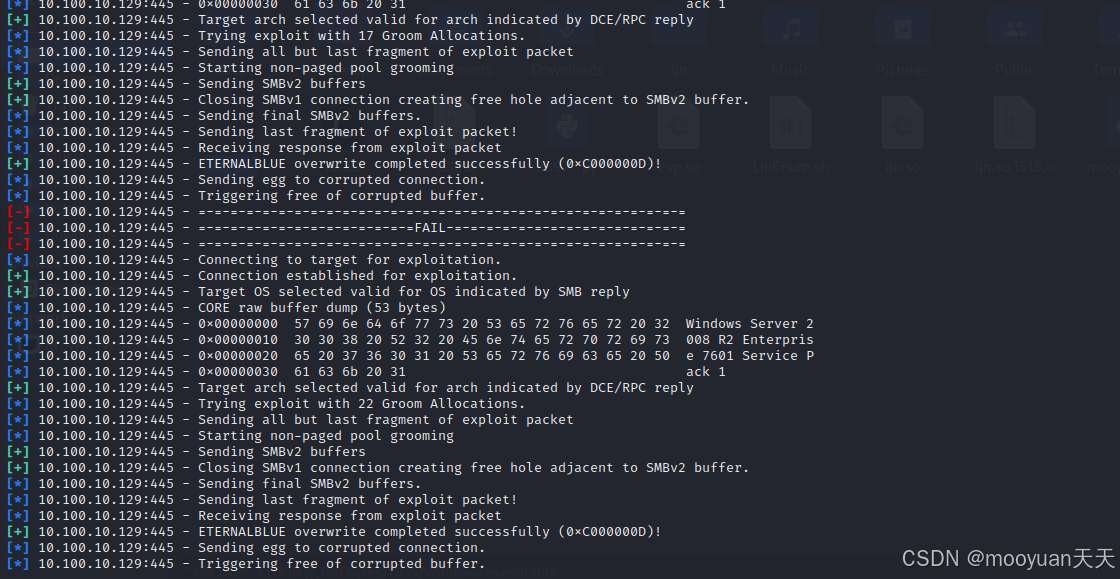 [*] 10.100.10.129:445 - Starting non-paged pool grooming