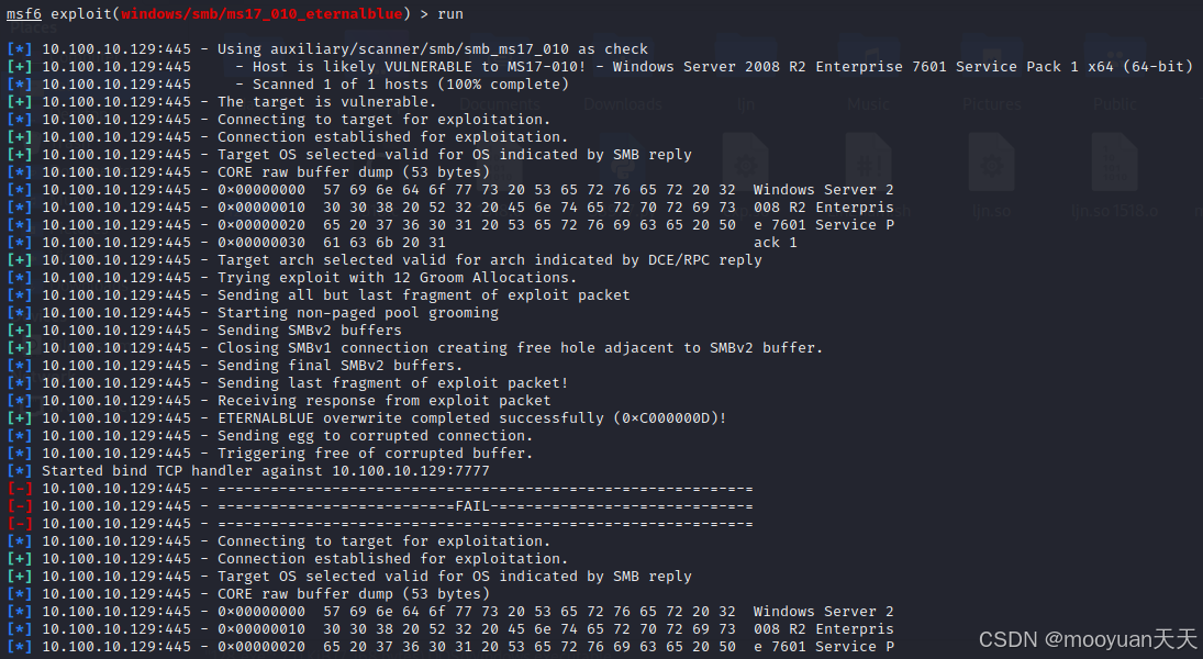 [+] 10.100.10.129:445 - ETERNALBLUE overwrite completed successfully (0xC000000D)!