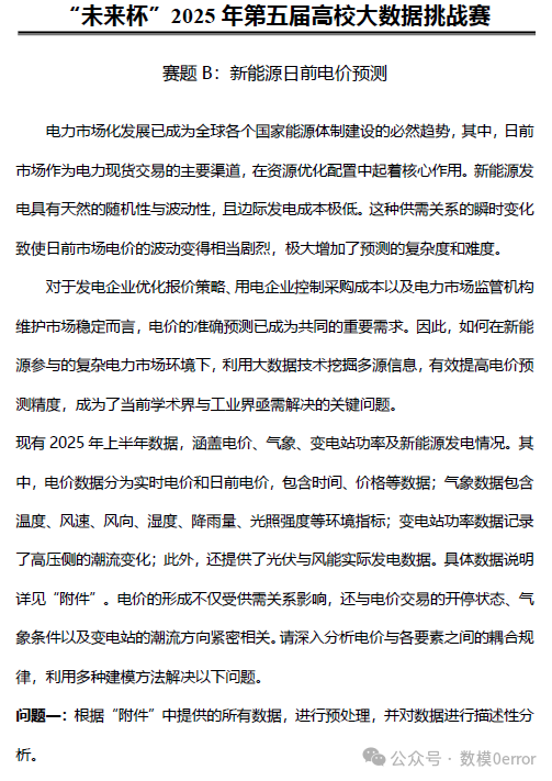 "未来杯"2025第五届高校大数据挑战赛赛题【AB题】详细分析
