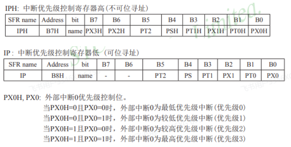 //STC单片机的中断优先级需要设置IP和IPH寄存器,IP寄存器可以位操作,IPH只能寄存器操作
