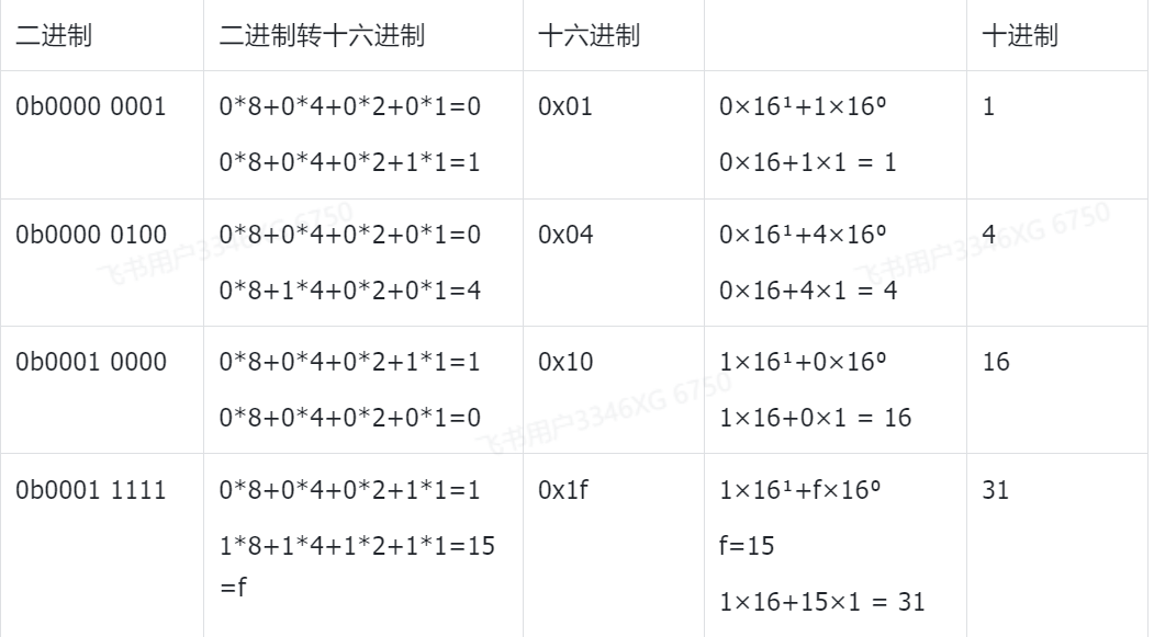 十六进制:十六进制是一种数值表示方式,包含0到9和A到F这16个数字,常常这样表示0x01