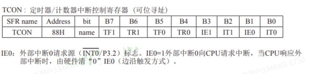 IE0=1外部中断向CPU请求中断,中断响应后,IE0=0