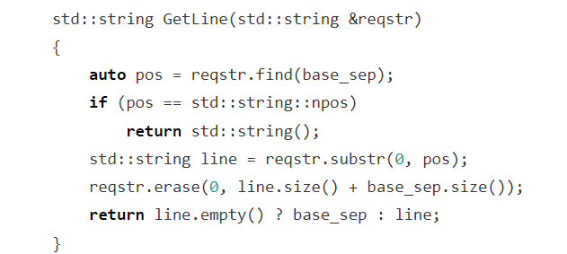 reqstr)中,按 HTTP 协议的换行分隔符(base_sep,即\r\n)提取一行内容,并从原字符串中移除已提取的部分,实现请求内容的逐行解析。2. 关键逻辑解析