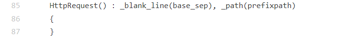 HttpRequest类的构造函数, 通过初始化列表提前设置_blank_line(协议分隔符\r\n)和_path(资源根路径),确保HttpRequest对象创建时就具备 HTTP 解析所需的基础配置,为后续的请求行、请求头解析流程提供必要的初始值。这是