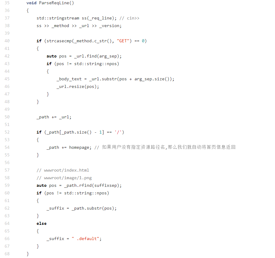 GetLine从原始请求字符串reqstr中提取第一行,赋值给_req_line(对应 HTTP 请求的 "请求行" 部分);- 提取请求头 :通过