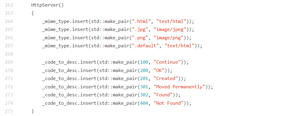_mime_type[".html"] = "text/html";:配置 html 文件的 MIME 类型;_mime_type[".jpg"] = "image/jpeg";:配置 jpg 图片的 MIME 类型;_mime_type[".png"] = "image/png";:配置 png 图片的 MIME 类型;_mime_type[".js"] = "application/x-javascript";:配置 js 文件的 MIME 类型;_mime_type[".css"] = "text/css";:配置 css 文件的 MIME 类型;_mime_type[".default"] = "text/html";:配置未知后缀文件的默认 MIME 类型;_code_to_desc[200] = "OK";:配置 200 状态码的描述文本;_code_to_desc[404] = "Not Found";:配置 404 状态码的描述文本;_code_to_desc[400] = "Bad Request";:配置 400 状态码的描述文本;_code_to_desc[500] = "Internal Server Error";:配置 500 状态码的描述文本;我们接下来分三步来看这个HandlerHttpRequest函数