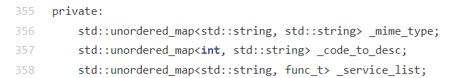 func_t通常作为请求处理函数的统一接口类型------ 用于规范 "处理请求、生成响应" 的函数格式,方便管理不同的请求处理器(如路由对应的业务处理函数),实现请求分发逻辑与具体业务处理的解耦,提升代码的灵活性与可维护性。这些是 HTTP 服务器核心类的私有成员变量,分别承担 "资源类型映射""状态码配置""请求路由管理" 的功能,是服务器处理请求、构建响应的基础数据容器: