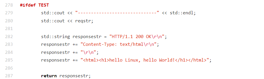 此逻辑是 HTTP 服务器的测试辅助分支,用于快速验证服务器与客户端的基本通信链路是否正常,避免实际业务逻辑(如请求解析、资源读取)对测试的干扰。