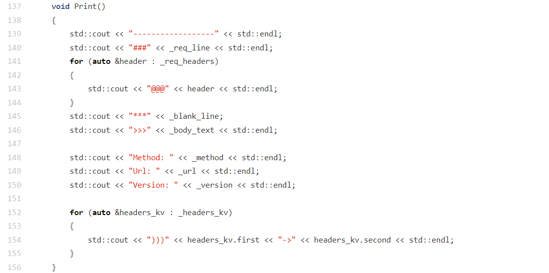 该函数的设计目的是让我们快速直观地核对 "原始请求" 与 "解析结果" 是否一致,是 HTTP 服务器开发中常用的调试工具。