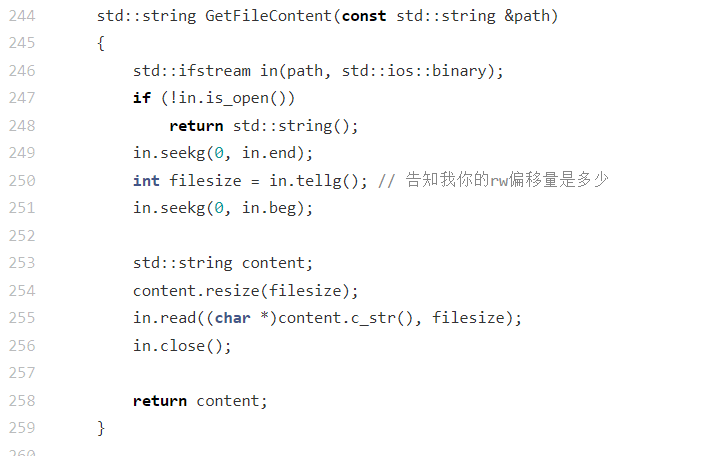 !in.is_open()),直接返回空字符串;- 获取文件大小 :通过