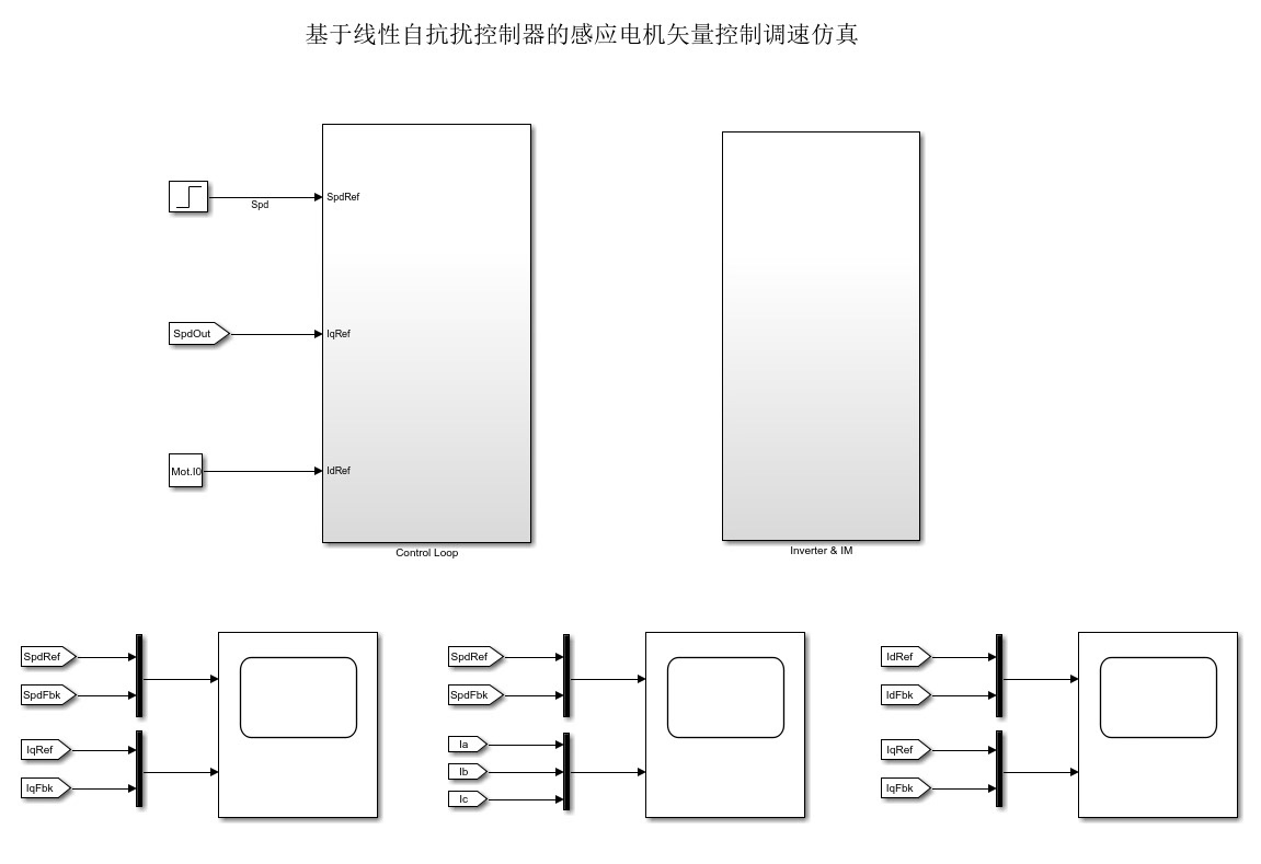 电机控制这玩意儿玩过的都懂,抗扰动能力直接决定系统稳不稳。最近在Matlab/Simulink里复现了个用一阶线性自抗扰(LADRC)的异步电机矢量控制方案,实测比传统PID省心不少,尤其是那个自动补偿扰动的骚操作真带劲。