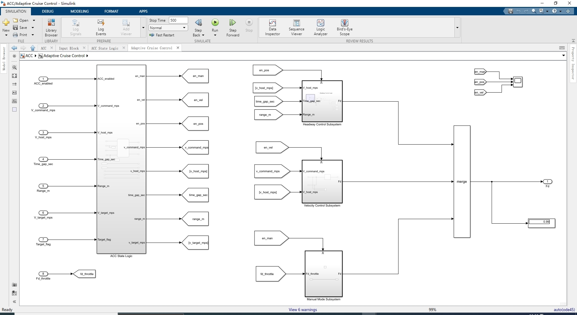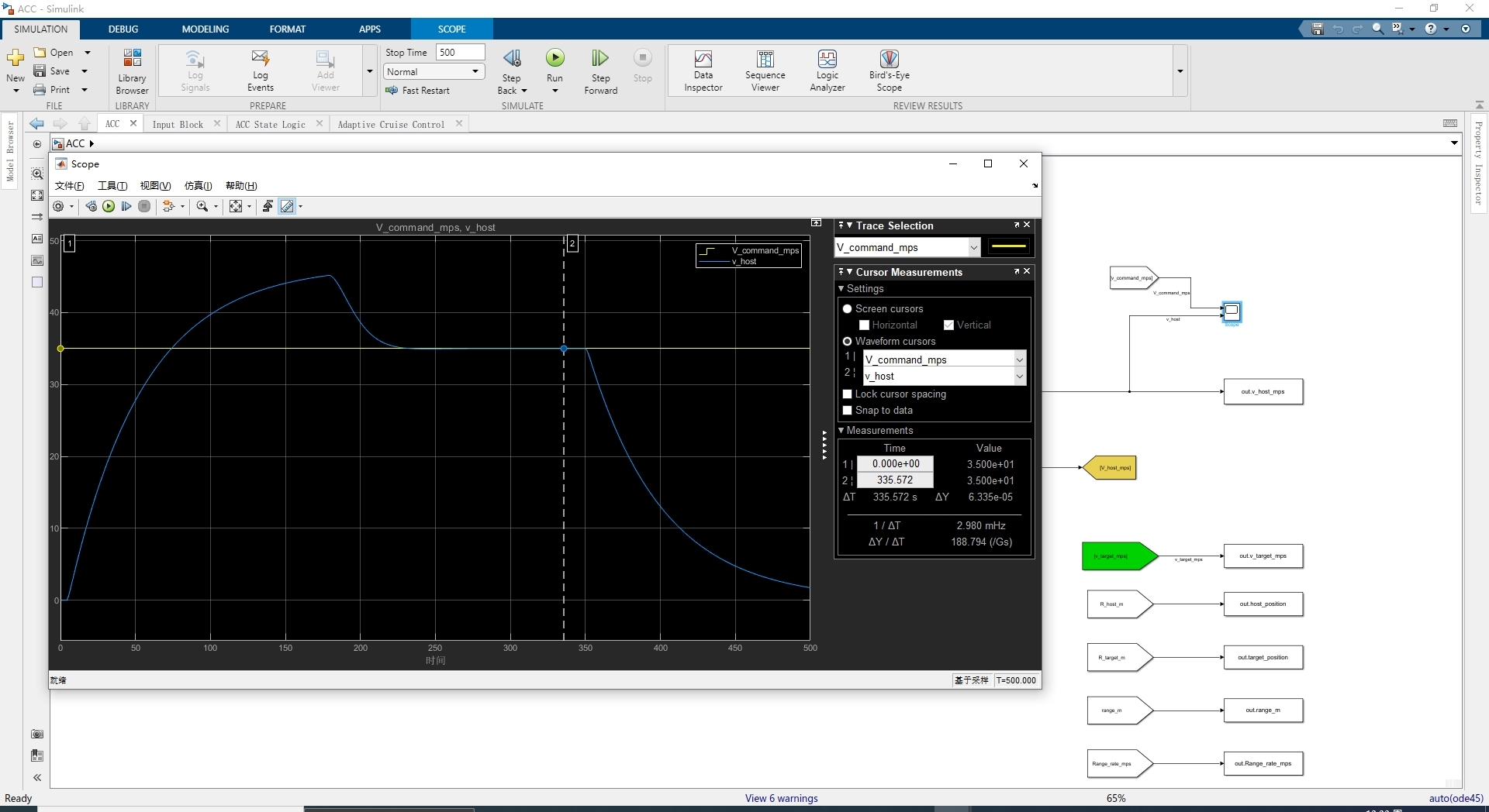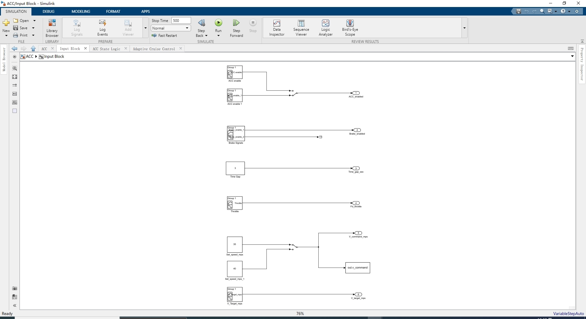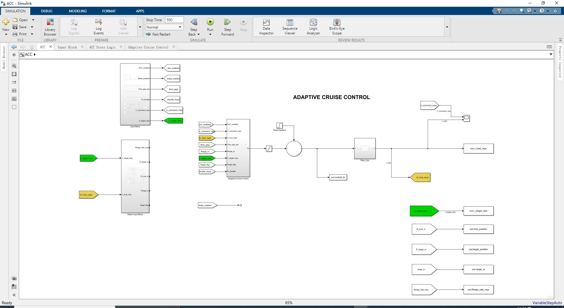- 输入模块:用于设定期望速度、前方车辆速度和加速度等输入信号。