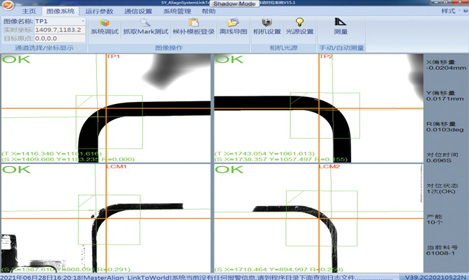 MasterAlign视觉系统是方案智能化的核心。该系统集成了前沿的图像处理与运动控制算法。在获取到TP与LCM的图像后,其算法能在毫秒级时间内完成特征识别、位置解算,并精确计算出两者在X、Y轴以及旋转角度(θ)上的偏差值。
