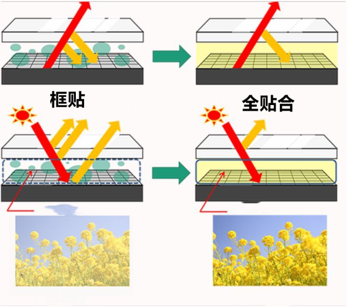 平板电脑屏幕通常由表层的保护玻璃(Cover Glass,常与触摸屏TP集成)和内部的液晶显示模组(LCM)构成。传统框架贴合方式会在两层材料间留下空气间隙,导致光线反射、屏幕显色灰暗、透光性下降,并影响触控信号的传输灵敏性。