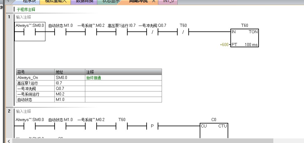 每个子程序对应一个功能块,这种结构在后续升级维护时特别方便。比如要修改阻垢剂配方,直接找到SBR2子程序里的对应段落就行,不用满程序找代码。