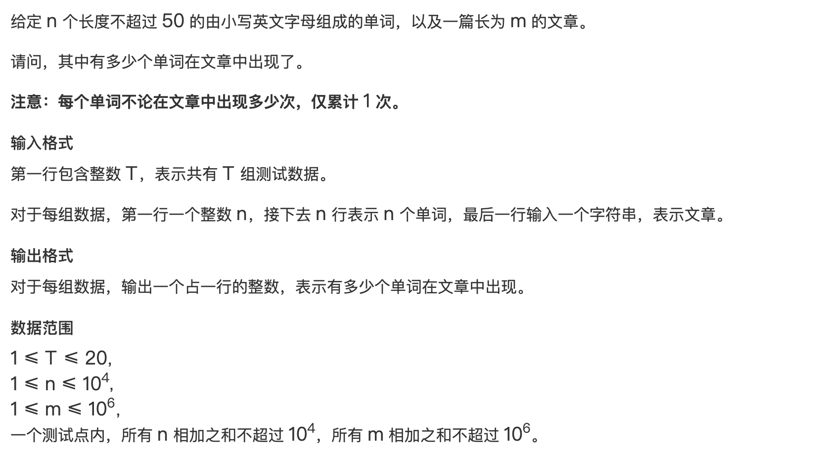 使用cnt[p]记录如果当前位置的节点编号是单词结尾 , 将该位置 + 1 +1 +1, 因此在统计单次数量的时候, 需要将指针 p p p能到达的字符串都遍历一遍, 具体的来说