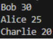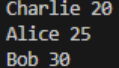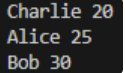 std::cout << pq.top().name << " " << pq.top().age << std::endl;