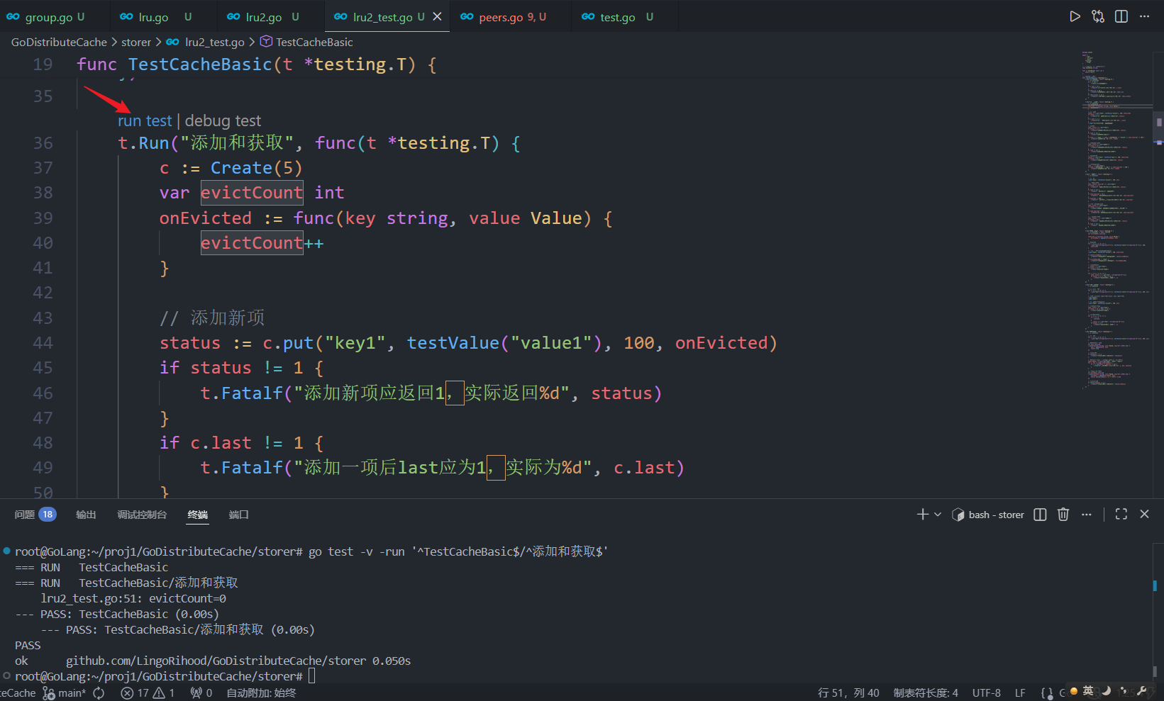 root@GoLang:~/proj1/GoDistributeCache/storer# go test -v -run '^TestCacheBasic$/^添加和获取$'