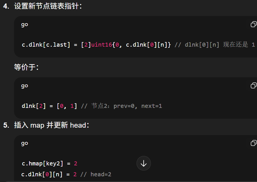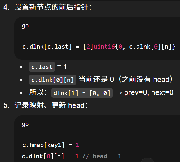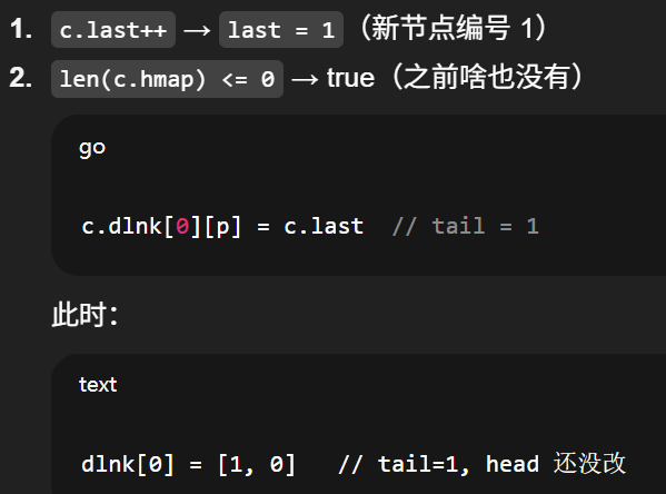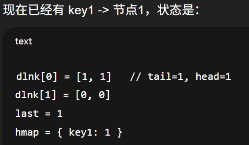 dlnk[1] = [2, 0] // 节点1:prev=2, next=0