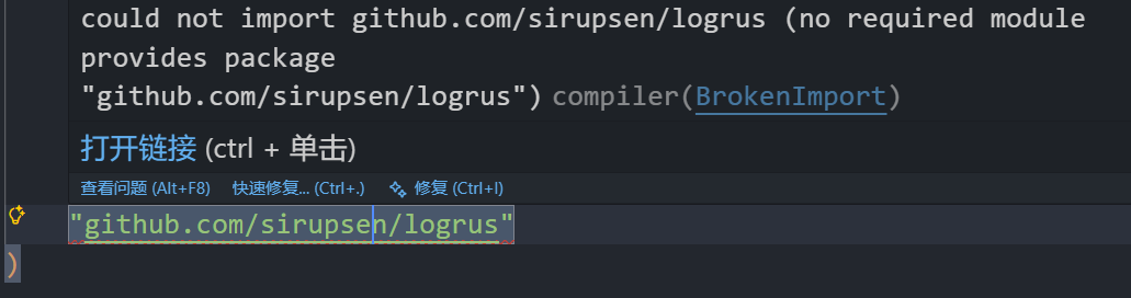 - [关于报错 could not import github.com/sirupsen/logrus (no required module provides package ...) 的解决方案](#关于报错 could not import github.com/sirupsen/logrus (no required module provides package …) 的解决方案)