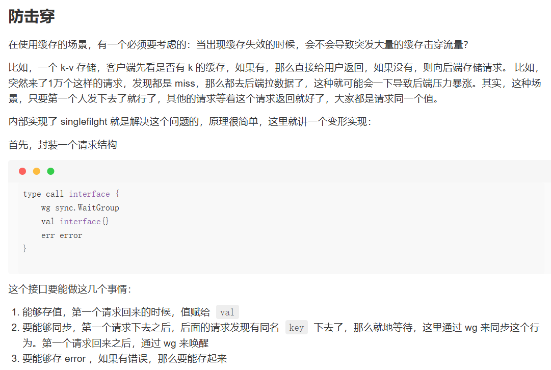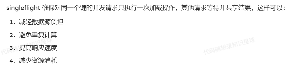 为了应对突发性的缓存失效导致大量请求直接打到数据库,GoCache 采用了SingleFlight机制