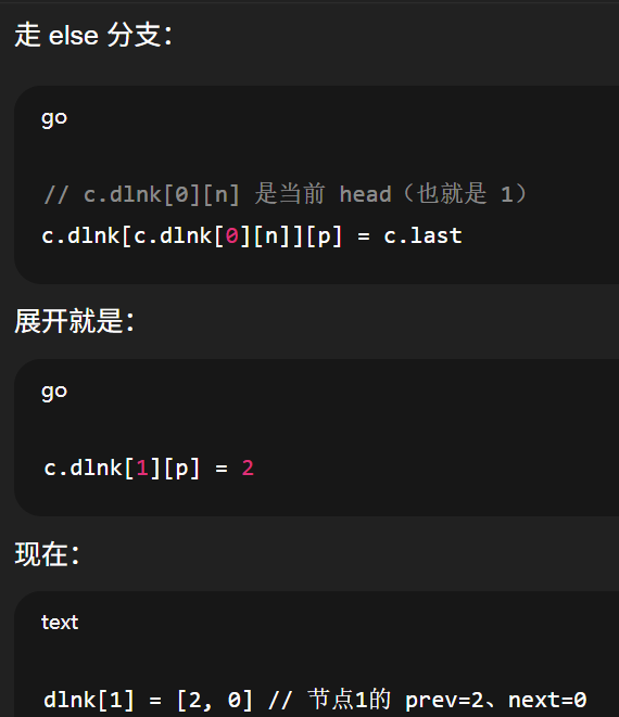 dlnk[2] = [0, 1] // 节点2:prev=0, next=1