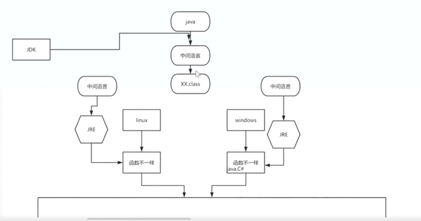 首先,java(比如cshap)其都是由c语言进化而来的,所以一般来说,这俩语言都需要先翻译成C语言,再在不同的平台 (linux/windows)上被翻译成各自平台的内核函数再执行,因此一套代码在不同平台的编译版本是不能互通的,但是java通过初次翻译成一个中间语言实现了跨平台(不彻底的编译),不同平台需要安装各自的JRE,再去通过这个JRE翻译成各自的内核函数进行运行。这个过程是会产生性能损耗的。