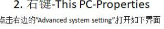 通过右键点击 "This PC(此电脑)"、选择 "Properties(属性)",再点击右侧的 "Advanced system settings(高级系统设置)",可进入系统高级配置界面(用于设置环境变量、系统保护、远程桌面等)。