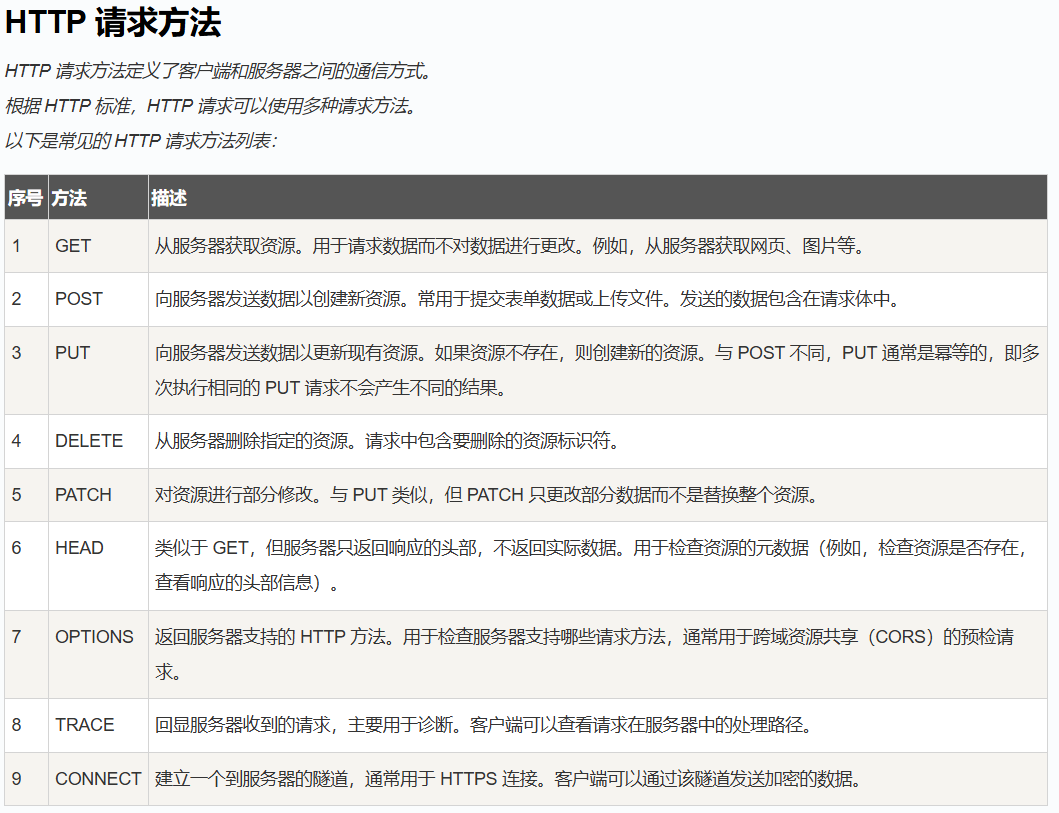 | 语义 | 获取资源(只读) | 提交 / 修改资源(写入) |