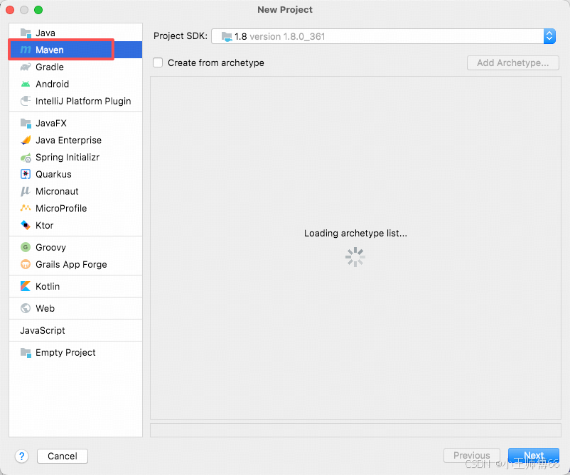 左侧选择 Maven,点击Next。然后再手动添加类路径依赖。