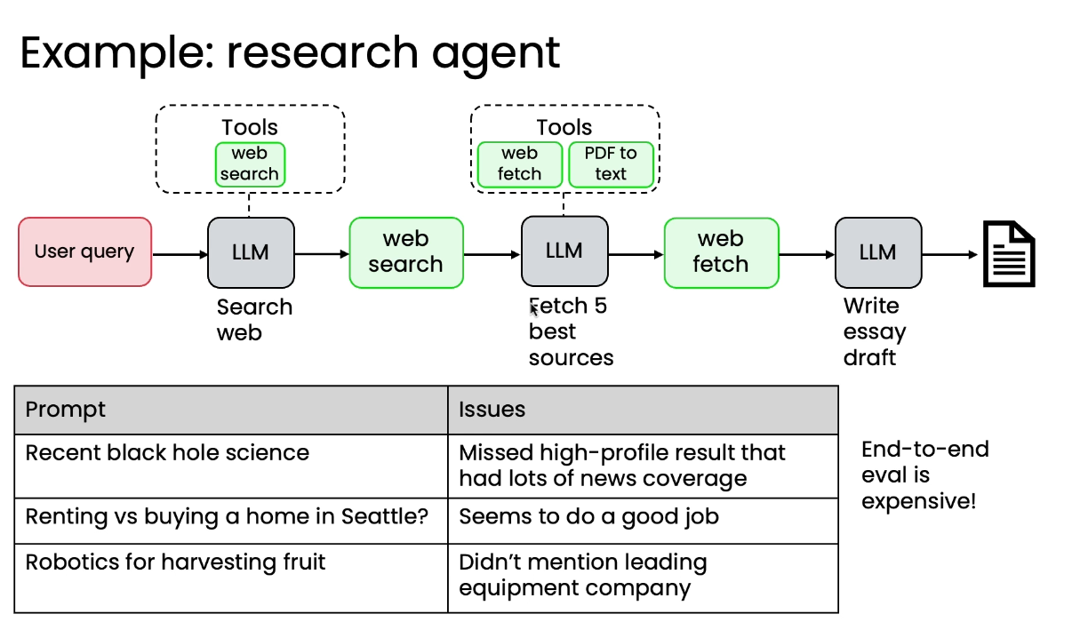 端到端评估成本高昂,即使是更换搜索引擎这样的小改动,都需要重新运行整个复杂的工作流程进行端到端评估,时间和金钱成本很高。同时,其他组件的随机性或噪声可能会掩盖被改进组件带来的微小、增量改进。