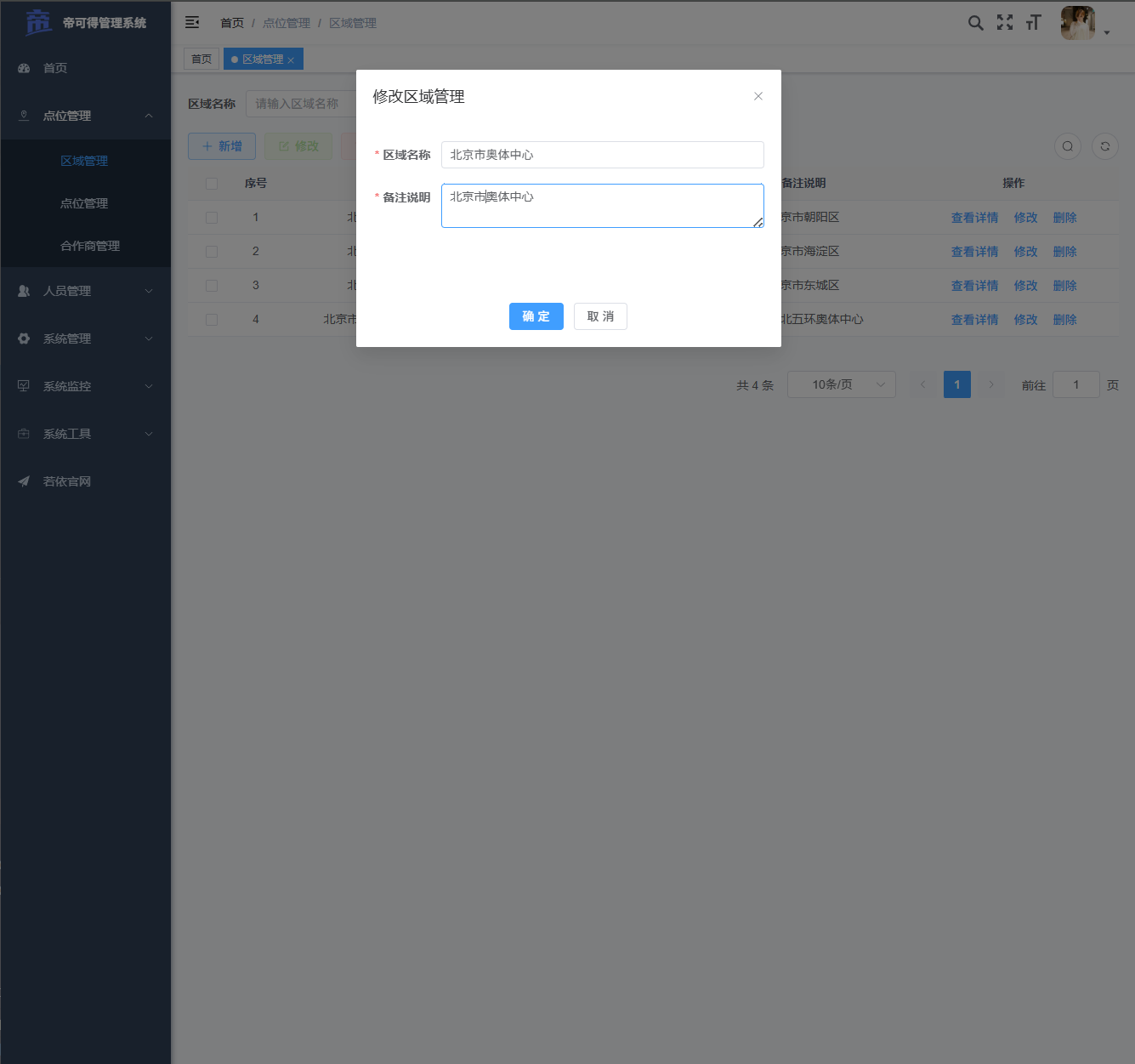 管理员通过此平台进行添加点位(包含所在区域 商圈类型 合作商 点位详情地址等),关联运营和运维人员
