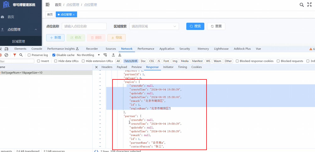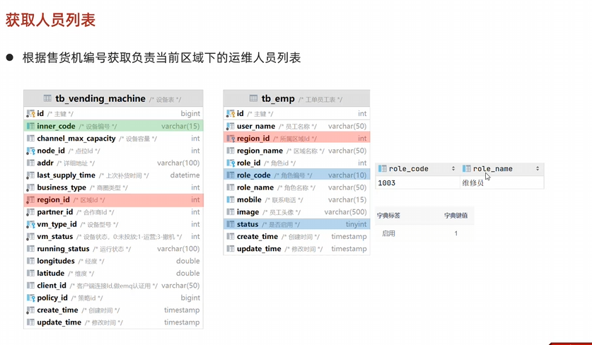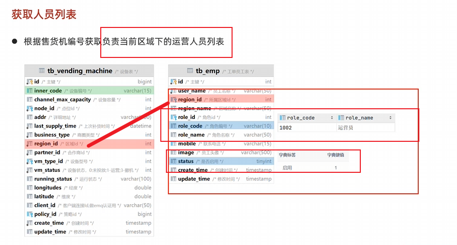 区域和点位表,记录个数都不是很多,所以我们采用关联查询这种方案。