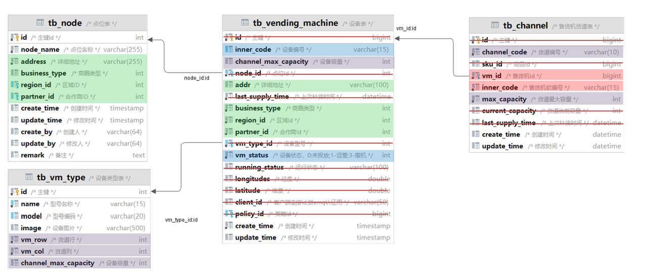 一个区域存在多个点位 一个点位又可以存放多个售货机 一个售货机又具有多个货道,每个货道可以存放一类商品