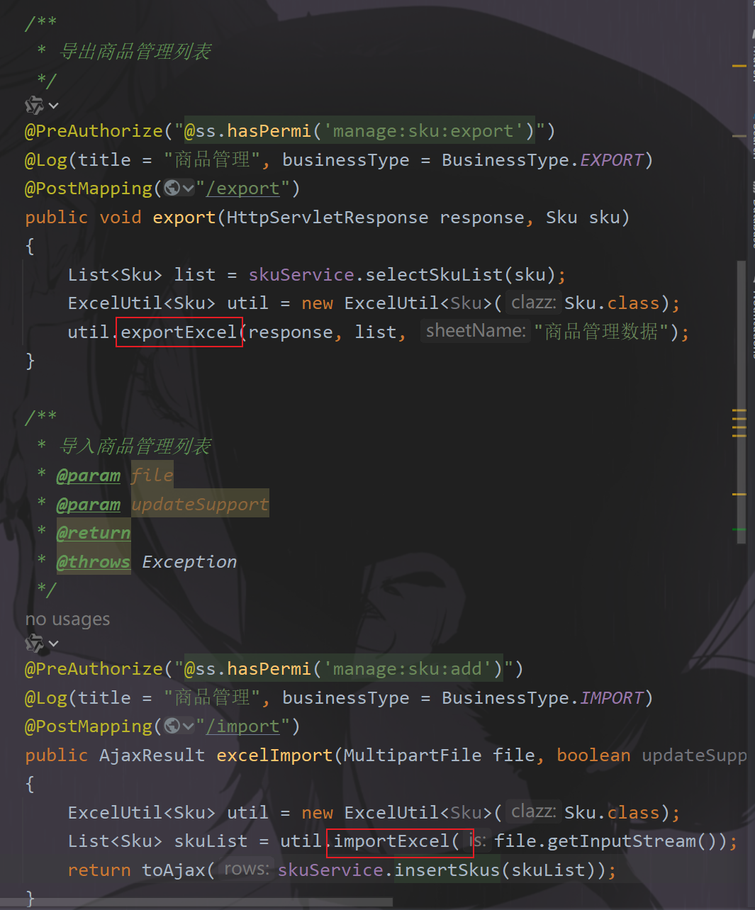@PreAuthorize("@ss.hasPermi('manage:task:edit')")