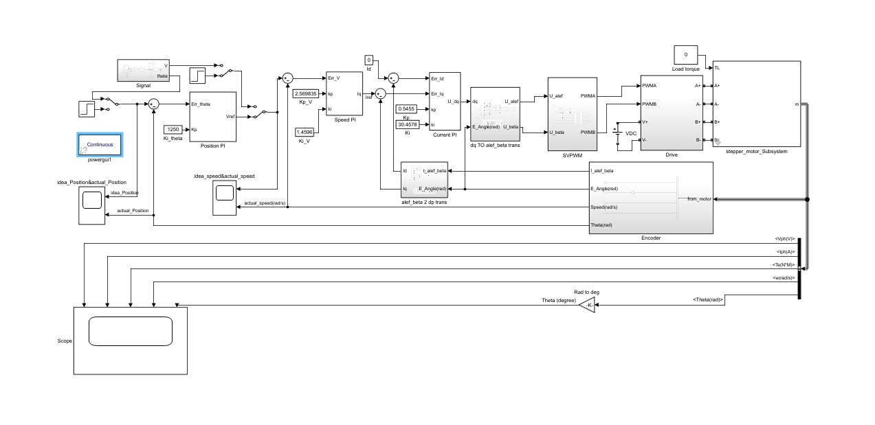 二相混合式步进电机闭环矢量SVPWM控制simulink仿真模型 参考文献: [1] 两相混合式步进电机高?性能闭环驱动?系统研究 汪全俉 [2] 两相 SVPWM 技术在位置跟踪伺服系统中的应用 刘源晶,杨向宇,赵世伟 [3] 二相混合式步进电动机传递函数模型推导