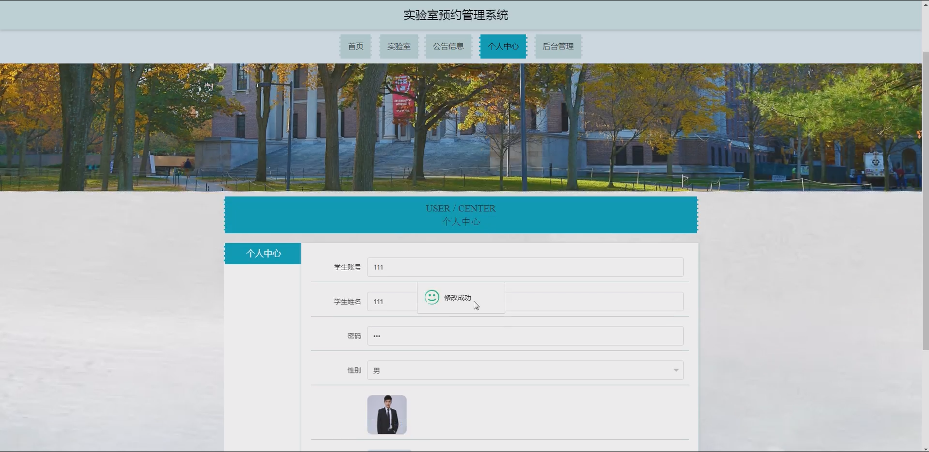 功能完整性:开发覆盖学生、教师两大核心用户角色,包含实验室分类、实验室信息管理、预约及取消预约等全流程功能模块,满足不同用户的使用需求。