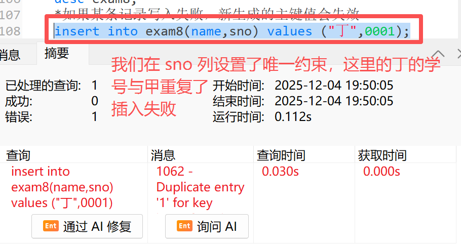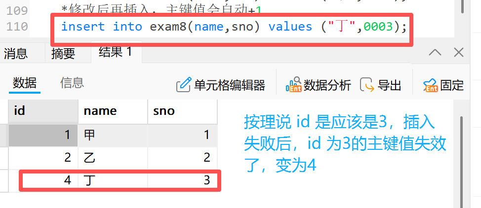 **3)**如果某条记录写入失败,新生成的主键值会失效