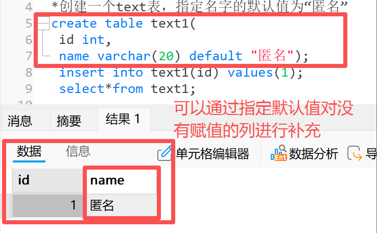 **4.2.1 示例一:**给名字列指定默认值 " 匿名 "
