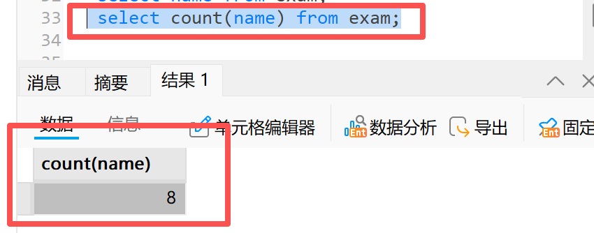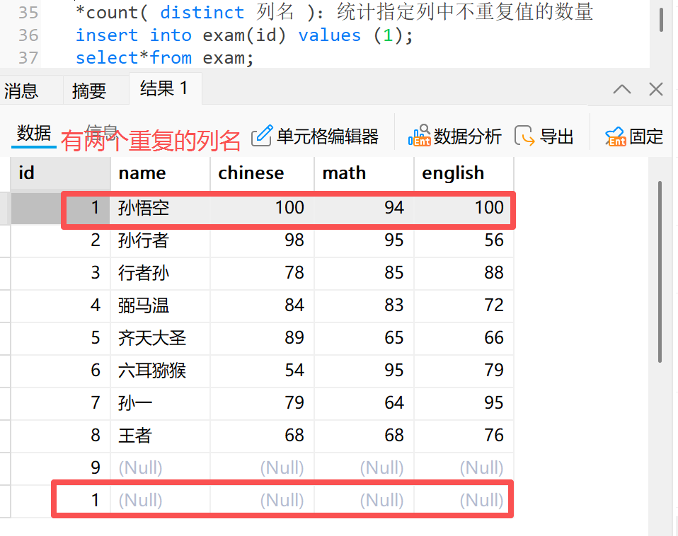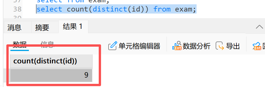 **3)**count( distinct 列名 ):统计指定列中不重复值的数量