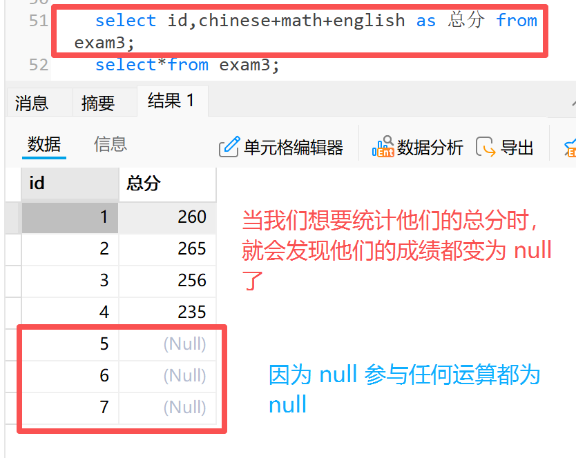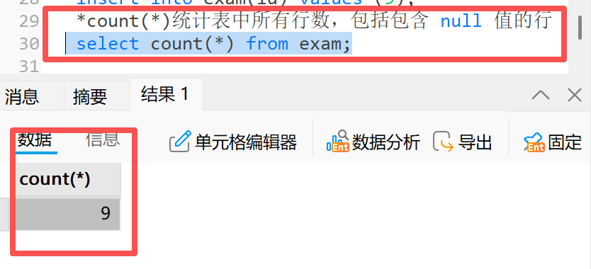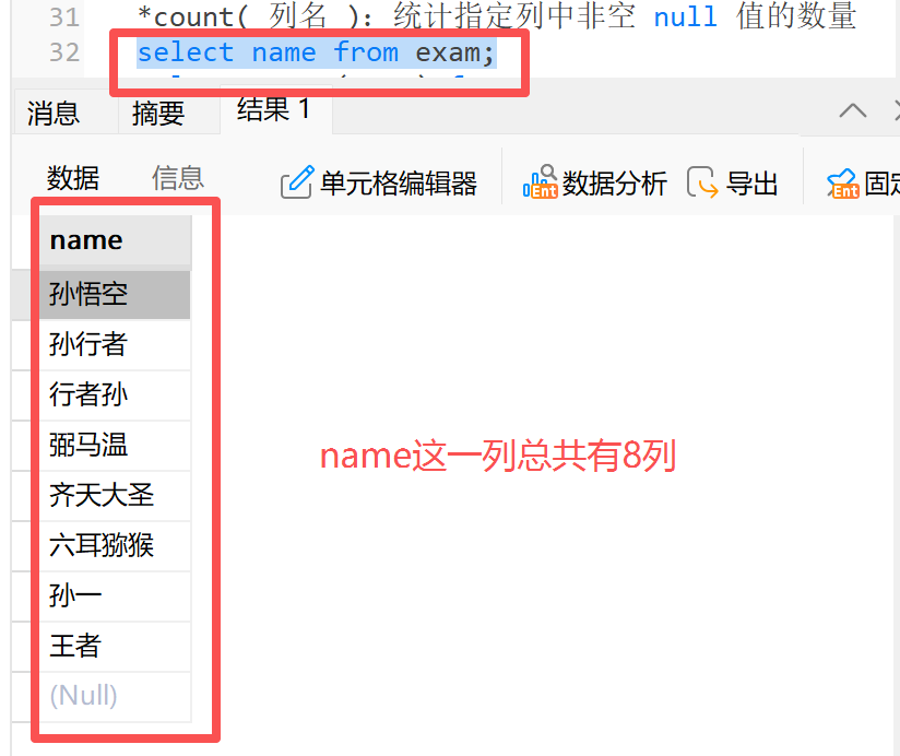 **2)**count( 列名 ):统计指定列中非空 null 值的数量