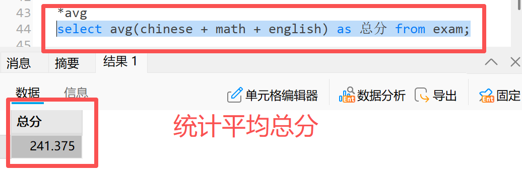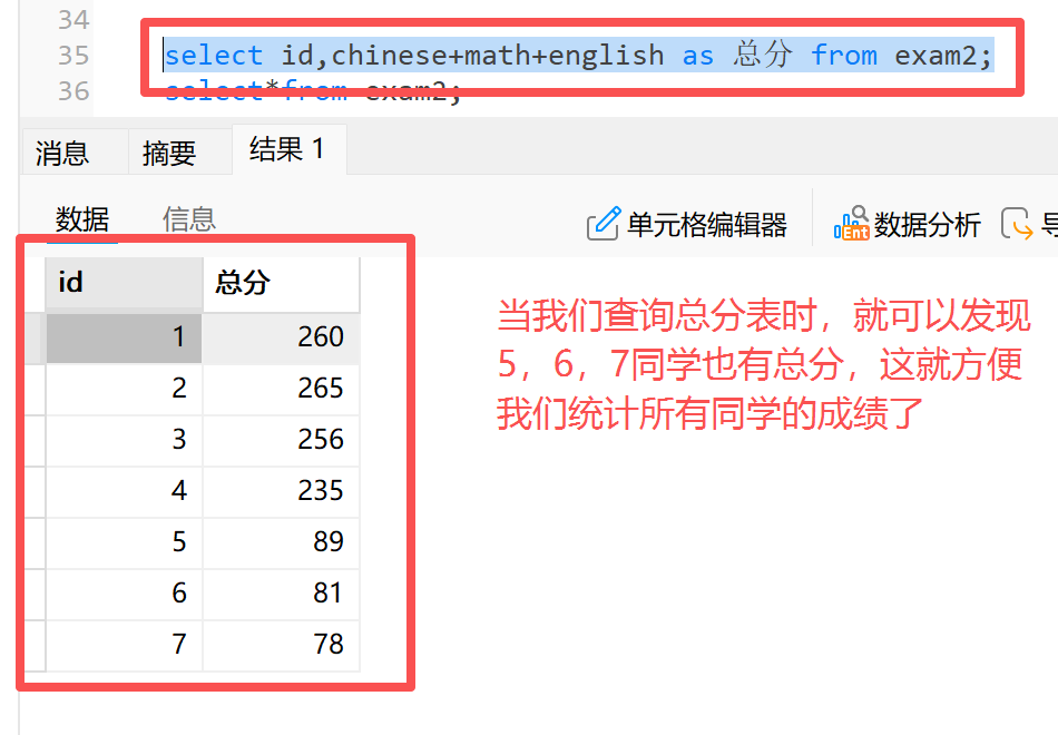 举例:统计所有学生数学成绩总分
