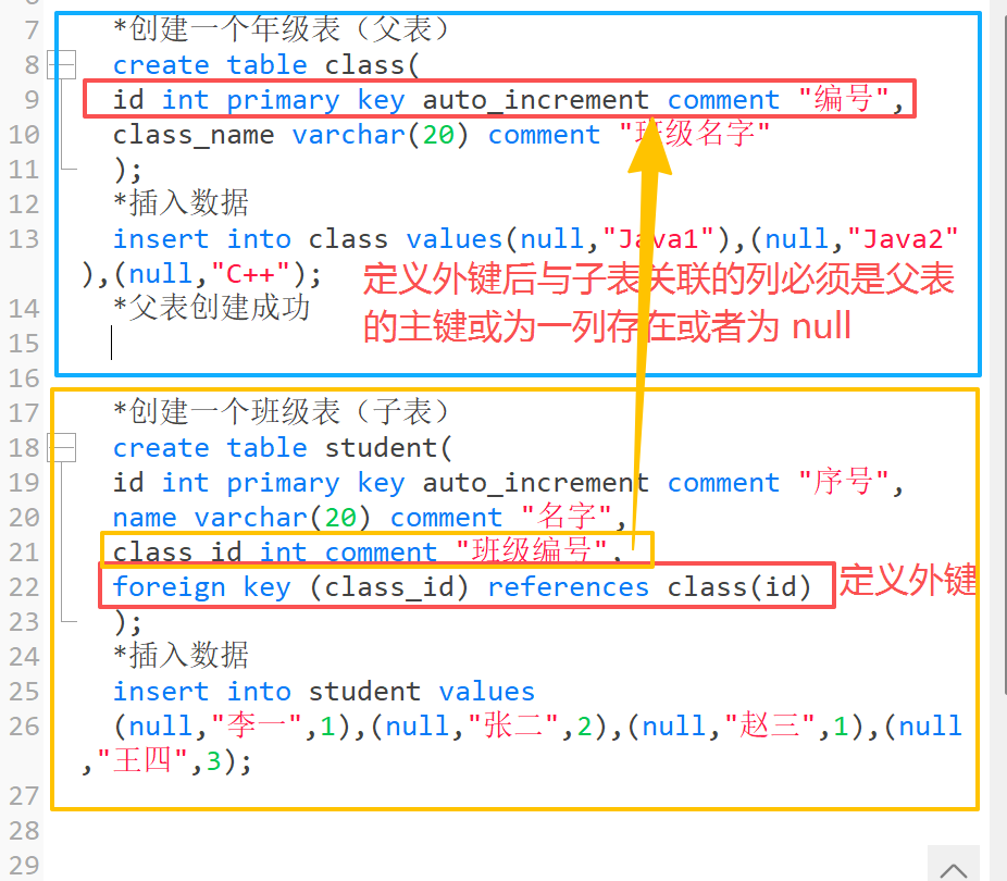 *创建一个班级表(子表)