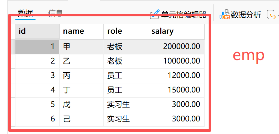 (5,'戊','实习生',3000.00),(6,'己','实习生',3000.00);