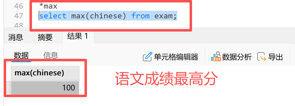 举例:查询语文成绩最高分
