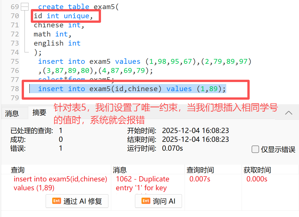 4.3 唯一约束( unique )