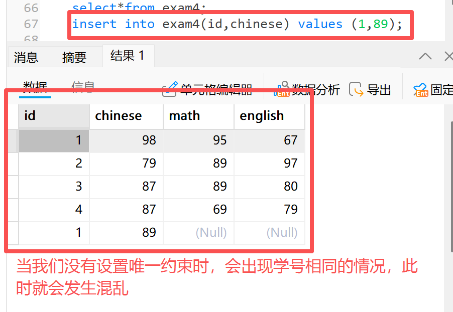 insert into exam4(id,chinese) values (1,89);